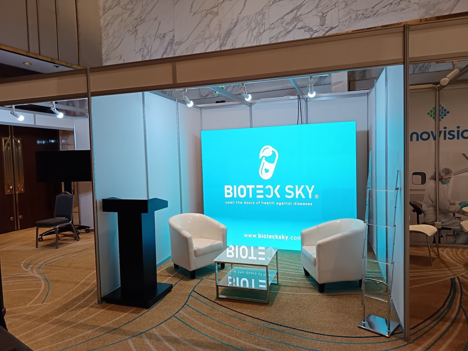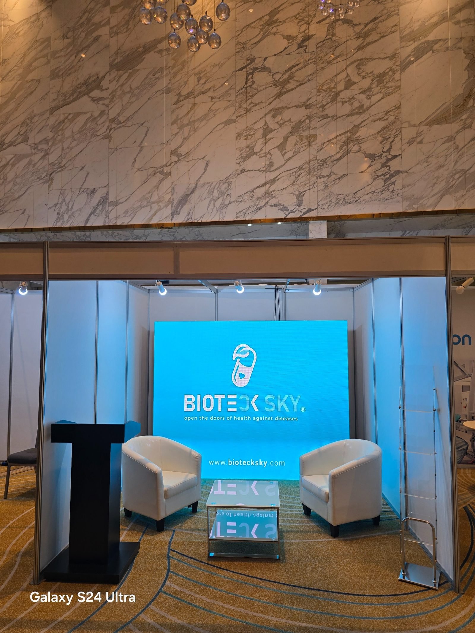 Exhibitions demand strong visual communication. For BIOTECK SKY, we installed a high-performance LED screen as the main booth branding wall, providing: